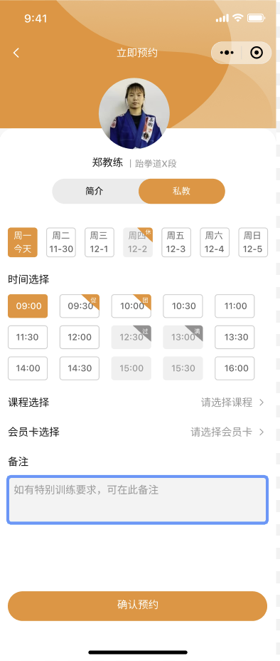 会员自主选择教练、时间、课程,一键完成私教预约